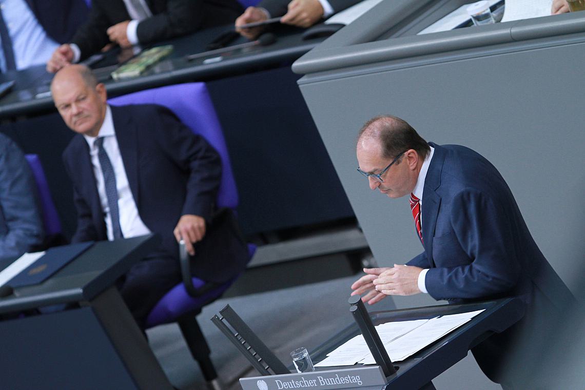Die Generalaussprache zum Kanzleretat ist üblicherweise der Höhepunkt der Haushaltswoche. Dabei kommt es traditionell zum Schlagabtausch zwischen Regierung und Opposition. Üblicherweise geht es nicht nur um den Bundeshaushalt, sondern um die gesamte Bundespolitik. Als größte Oppositionsfraktion durfte die Union am Mittwoch die Debatte beginnen. Dobrindt war der erste Redner vor Bundeskanzler Olaf Scholz (SPD).