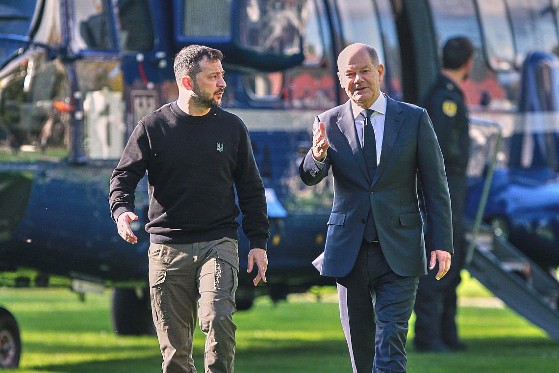 Der ukrainische Präsident dankte Deutschland und Scholz persönlich. „Deutschland hilft uns am meistens mit Luftverteidigung“, erklärte er. „Das rettet tausende Leben ukrainische Leben und gibt unseren Städten und Dörfern die Möglichkeit, sich vom russischen Terror zu schützen.“ Man müsse zugleich „schon an das nächste Jahr denken, dass die Unterstützung weiterhin auf diesem Niveau bleibt und uns gestattet, Leben zu retten“.