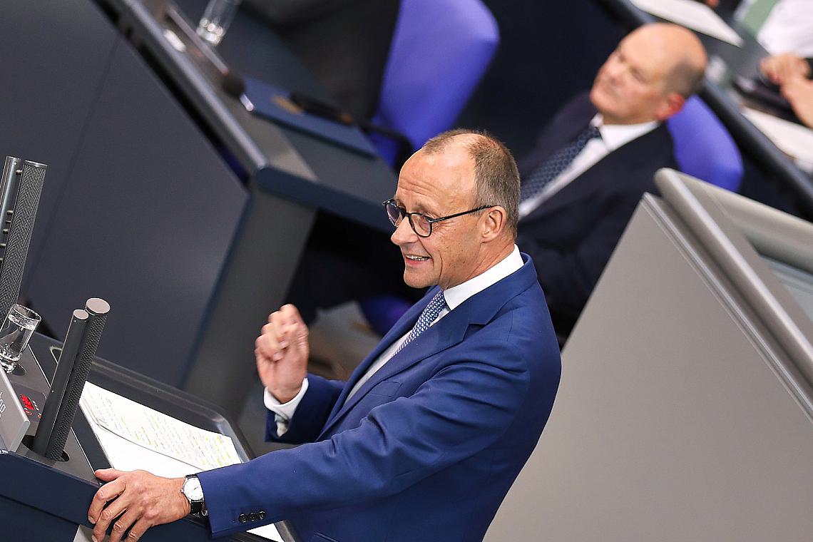 Er selbst habe klar gesagt, dass er den Marschflugkörper Taurus nicht liefern werde, sagte Scholz dem Nachrichtenportal T-Online. Merz hingegen „wollte ihn erst liefern, vor den Wahlen in Ostdeutschland hielt er eine Lieferung dann plötzlich für nicht mehr nötig, um im Oktober im Deutschen Bundestag eine Art Ultimatum für eine Lieferung zu formulieren“. Das nenne er „einen gefährlichen Zickzackkurs“, so Scholz.