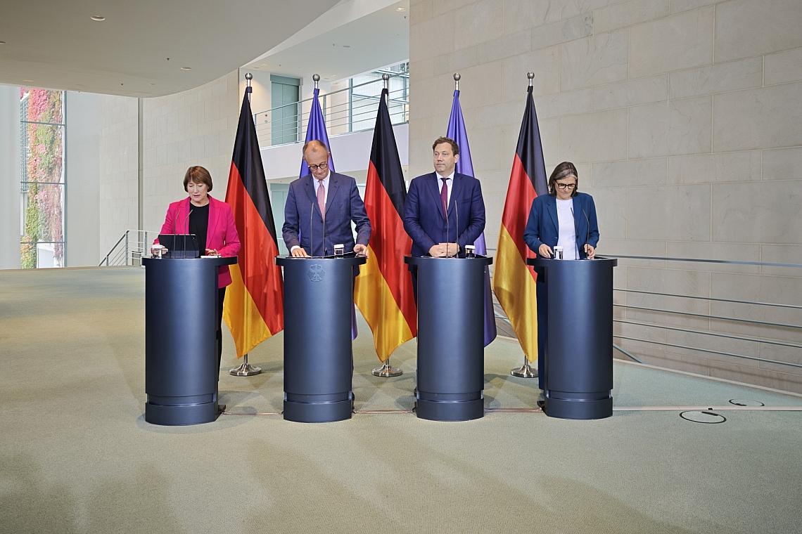 Finanzminister Lars Klingbeil (SPD) ergänzte, man stelle den Umstieg auf E-Mobilität und die Klimaziele nicht in Frage. Dennoch zeigte er sich offen für eine Lockerung der deutschen Position in Brüssel, etwa bei Plug-in-Hybriden und sogenannten Range Extendern, also zusätzlichen Aggregate in einem Elektrofahrzeug, die die Reichweite erhöhen. „Wir müssen außerdem unser Knowhow sichern und auf Zukunftstechnologien setzen“, erklärte er. „Dazu gehören neue Antriebsformen und Batterietechnologie `made in Germany`.“
